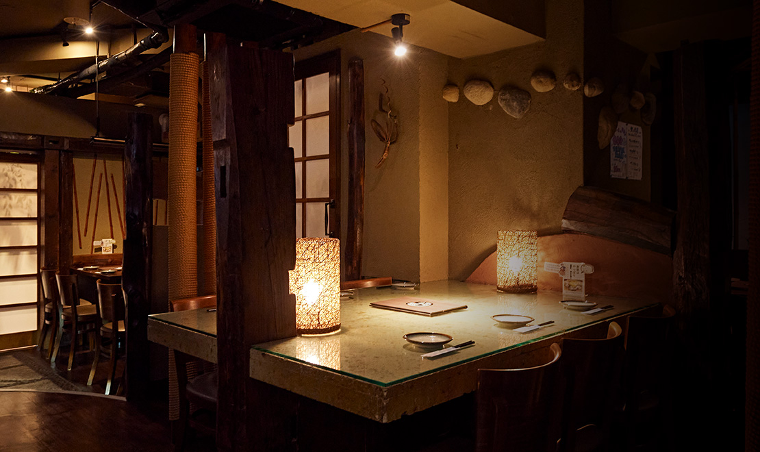 木目調のテーブルや椅子、壁紙、そして随所に飾られた木のオブジェは、まるで深い森の中にいる様な落ち着きと和やかさを醸し出します。8名様までお席をご用意できますので、お仕事帰りの飲み会といったお集まりの際にぜひご利用ください。